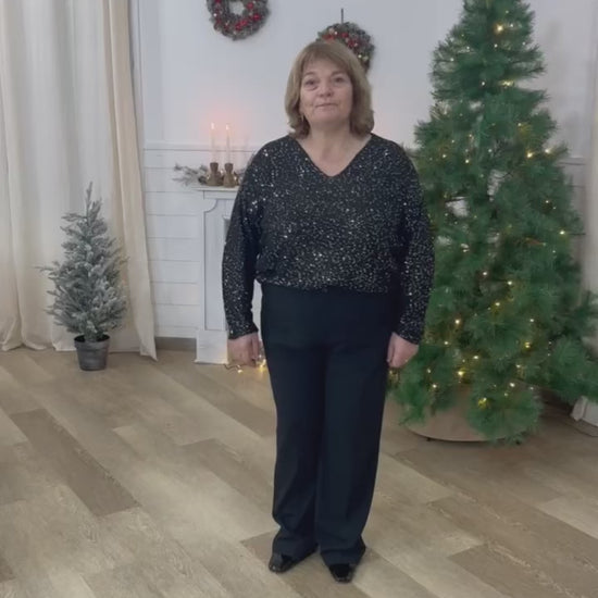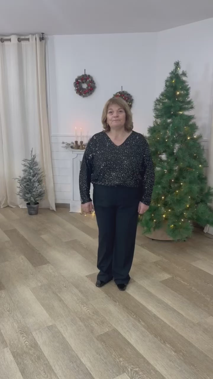 Le Pull Leilani apporte une touche festive et élégante à votre garde-robe grâce à son haut entièrement recouvert de sequins brillants. Sa base fluide et son tombé souple au niveau de la taille assurent un confort optimal tout en mettant joliment en valeur la silhouette. Une pièce lumineuse, parfaite pour les fêtes, pensée pour accompagner toutes les morphologies du 40 au 54 dans l’esprit d’un vêtement grande taille chic et inclusif.