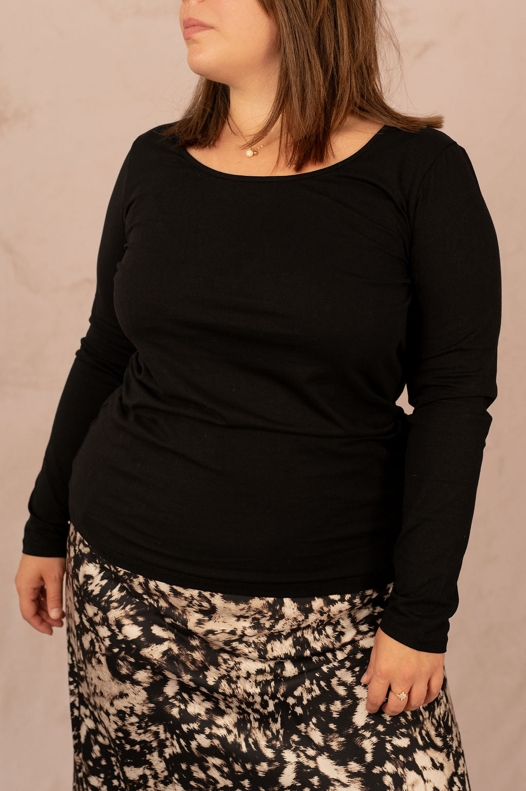 T-shirt Paxi – T-shirt noir basique à manches longues