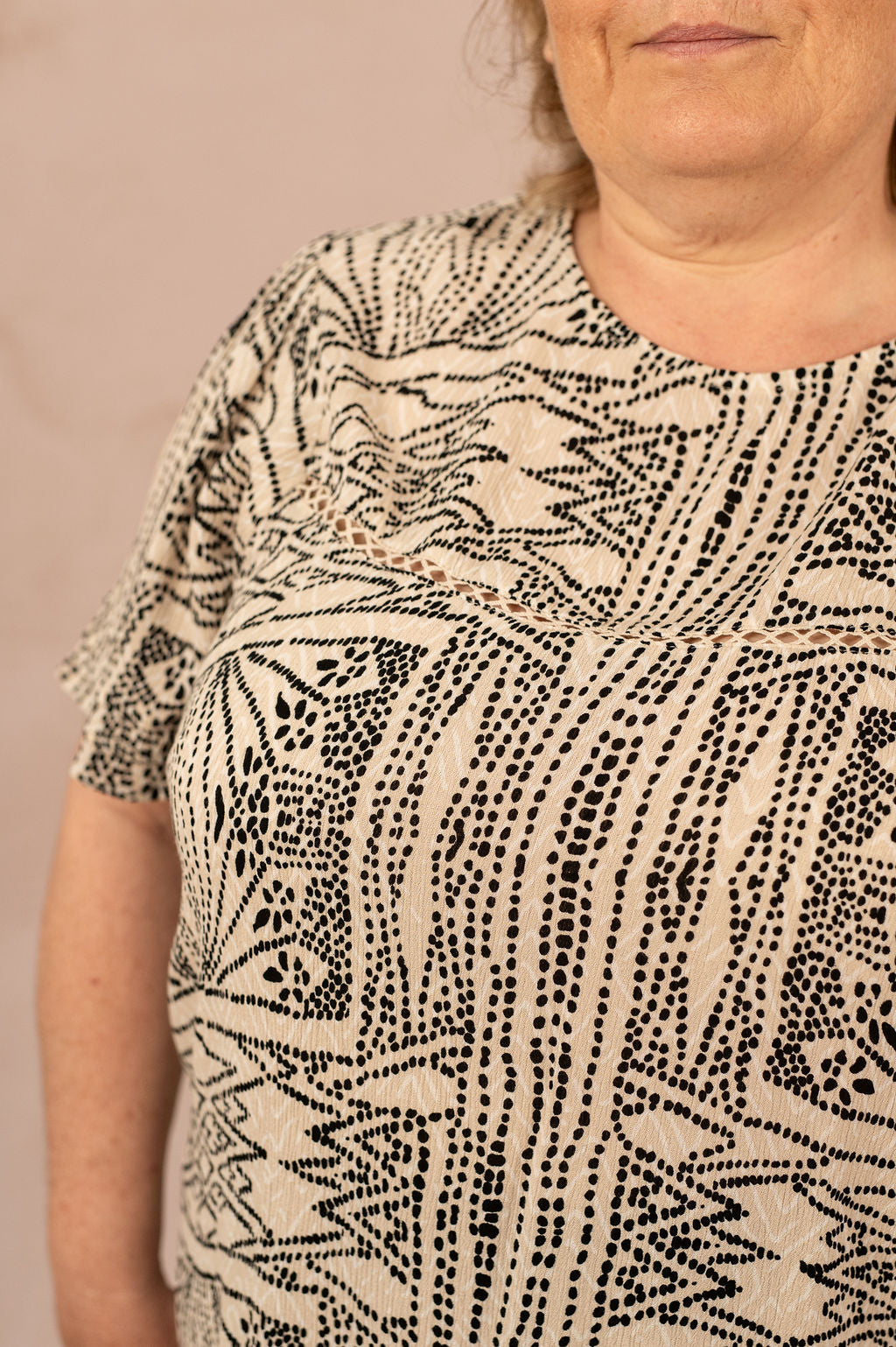 Imprimé graphique noir façon pointillé sur fond beige