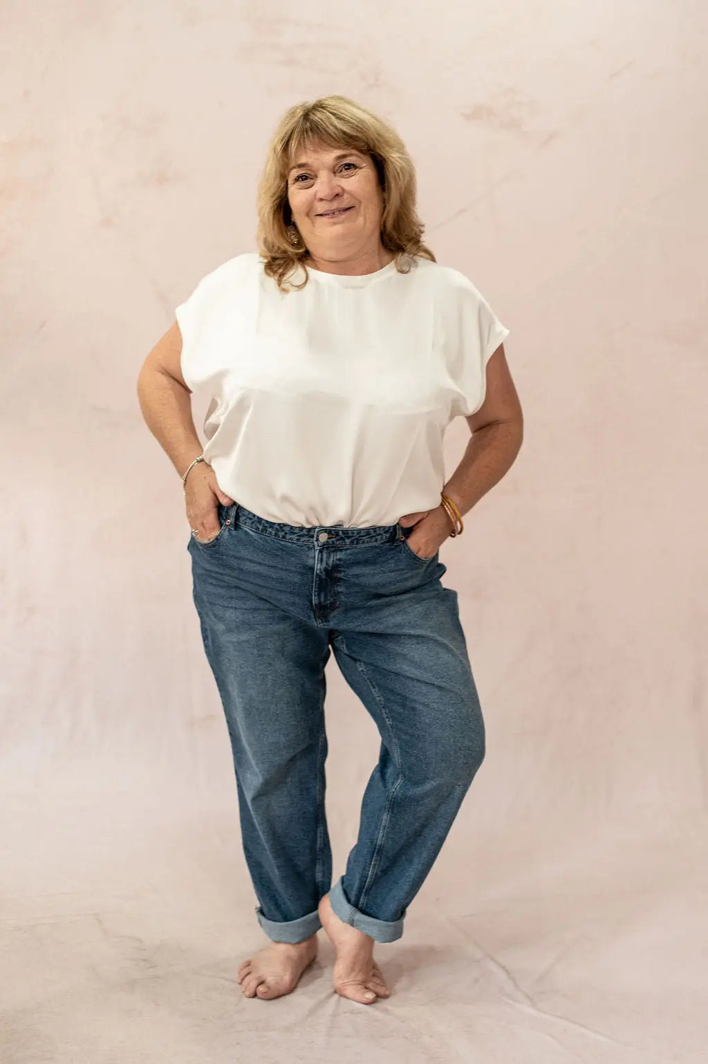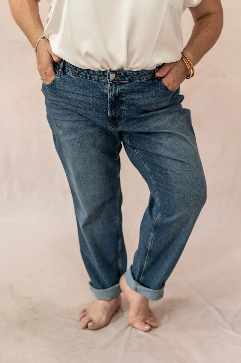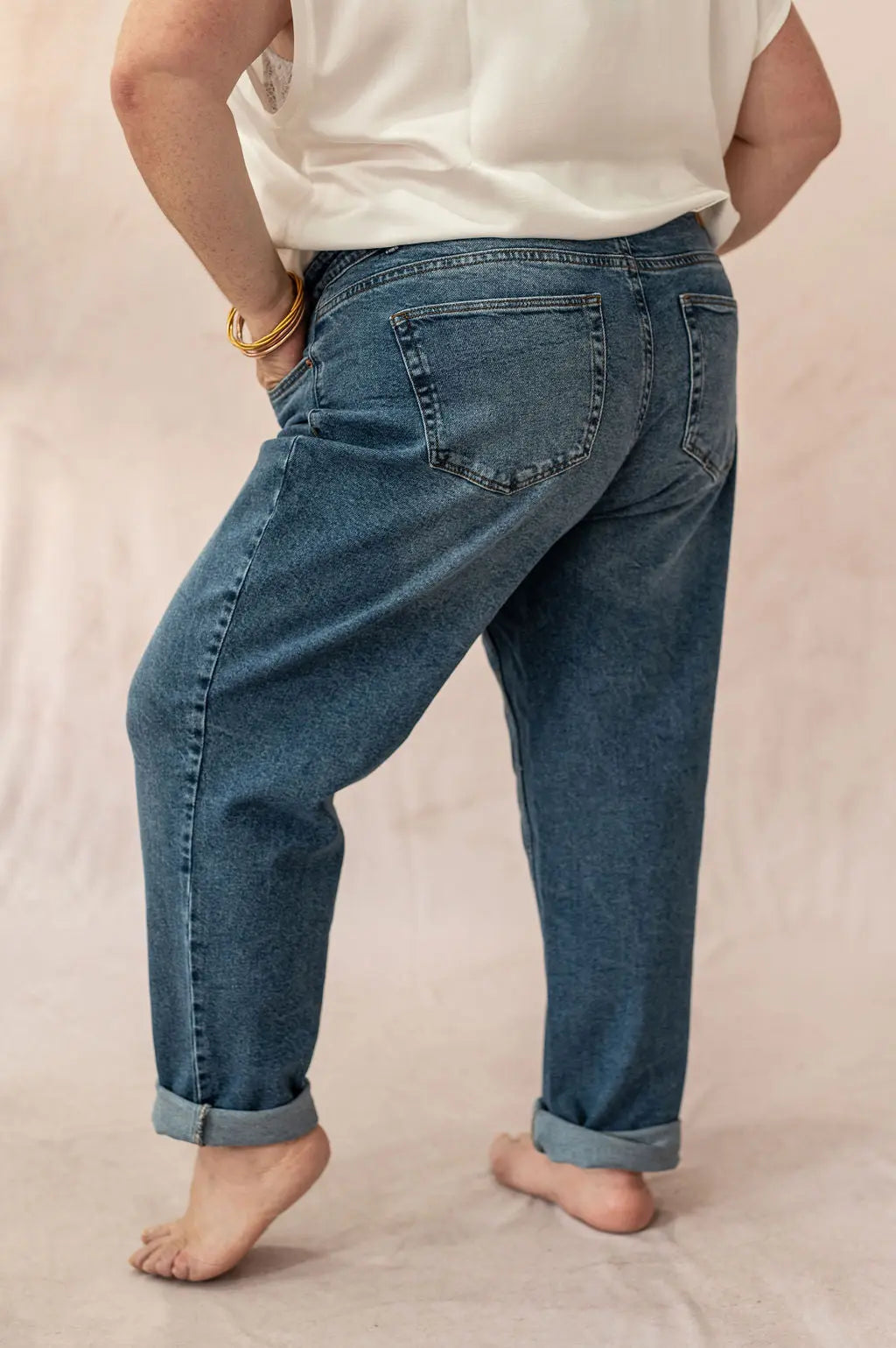 Associez le Jean Kyla avec une blouse fluide, un pull texturé ou un blazer oversize pour créer des looks effortless et féminins. Il se porte aussi bien avec des baskets qu’avec des bottines. Une pièce essentielle pour composer des tenues tendance en vêtement grande taille sans renoncer au confort.